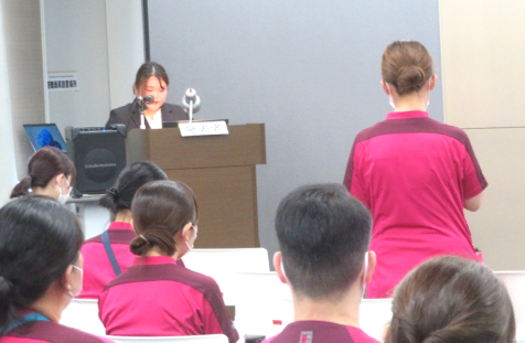 本当に感謝です。院長から手渡されたプレゼントは、モバイルバッテリーとマカロン型の付箋と飲み物です。最後はエリアごとに反省会を行い、情報共有を行いました。短時間であったため、詳細は後日レポートとしてまとめ、再度委員会の中で今後に向けて改善点など話し合っていく予定です。