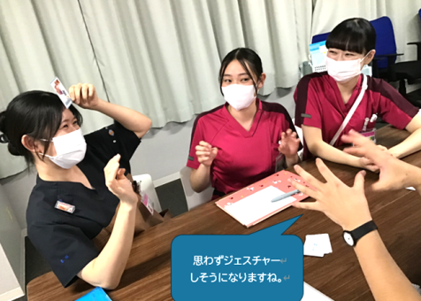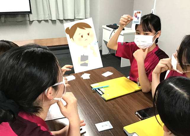 院内放送が流れ、それぞれがアクションカードに沿って行動していきます。
