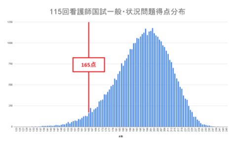 こうしたデータを考慮した結果、115回国試の合格ラインは165点の可能性が高いと予想し、合格ラインの幅は164~167点前後になると予想されます。